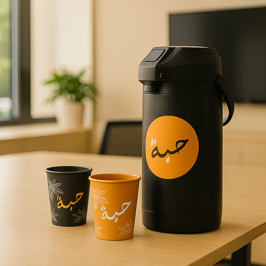 الدلة الفولاذية المعزولة تحافظ على سخونة القهوة لمدة تصل إلى 6 ساعات، وتشمل كل توصيل أكواباً ورقية تحمل العلامة التجارية. عند التوصيل الثاني، يقوم فريقنا اللوجستي المحترف بجمع الحاويات المستخدمة ويزودك بدفعة جديدة طازجة مع الأكواب حتى نهاية اشتراكك.
